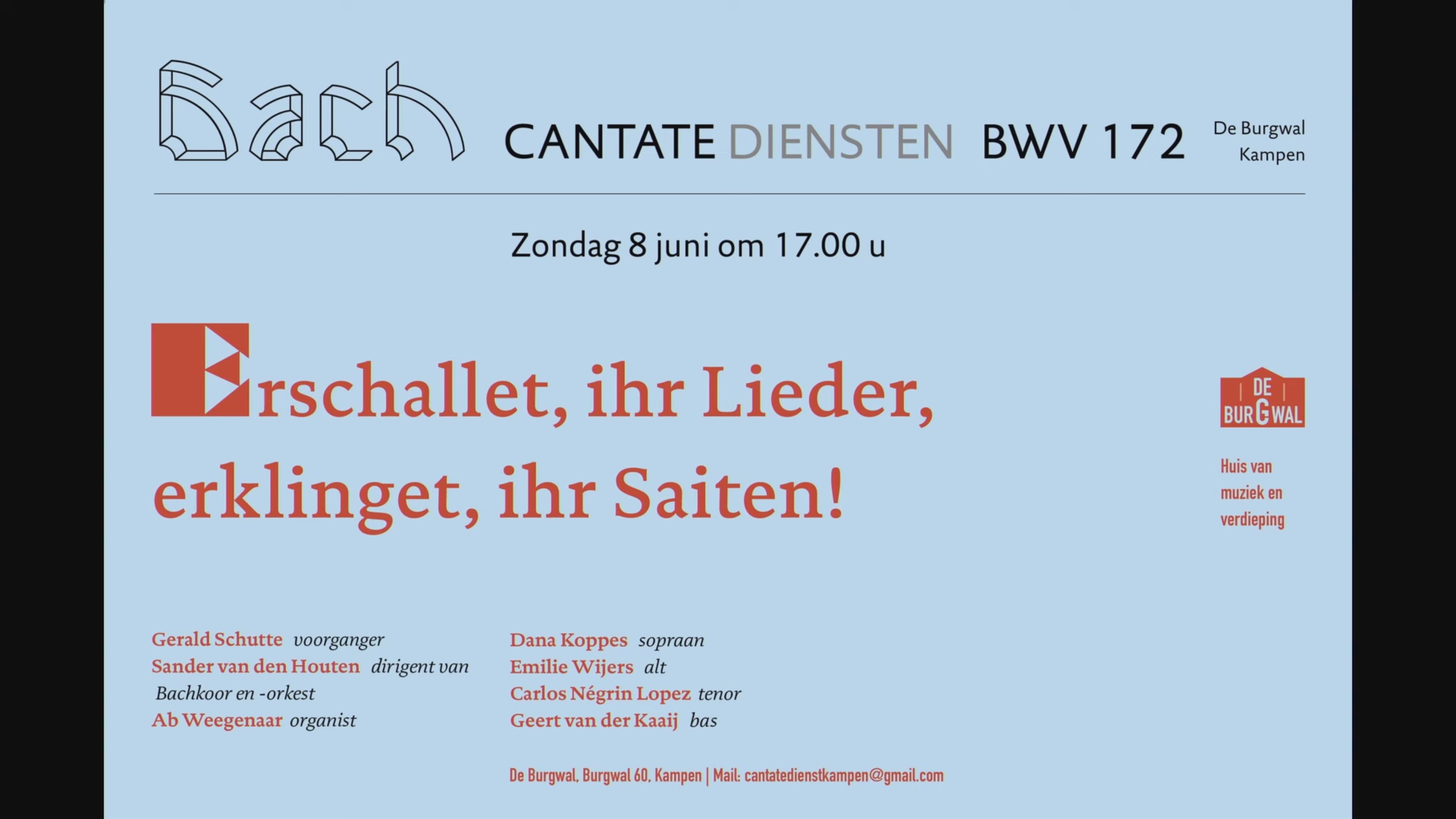 Cantatedienst 8 juni 2025 (1e Pinksterdag) in de Burgwal van Kampen, BWV 172 [C25-06] |