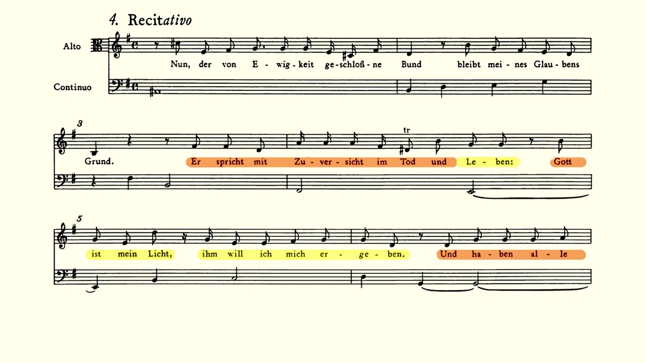 Mvt. 1: Chorus (Chorale) | Mvt. 2: Recitative [B] | Mvt. 3: Aria [T] | Mvt. 4: Recitative [A] | Mvt. 5: Aria (Duet) [ S, A] | Mvt. 6: Chorale