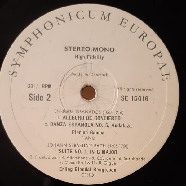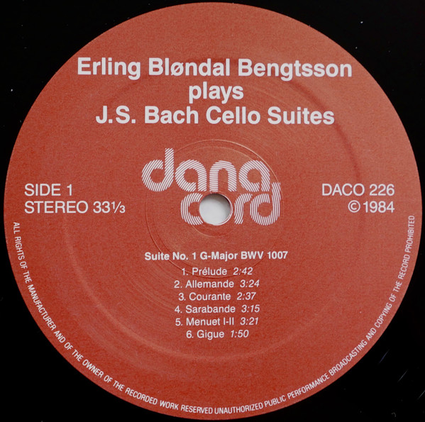 Side 1, 1-6: Suite for solo cello No. 1 in G major, BWV 1007 [LP: 17:19; CD: 17:09]