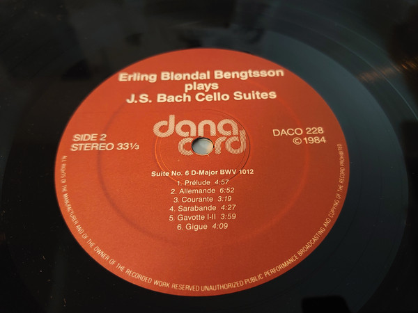 Side 2, 1-6: Suite for solo cello No. 6 in D major, BWV 1012 [LP: 27:43; CD: 27:39]